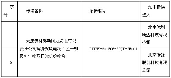 大唐锡林郭勒风力发电有限责任公司风电场A区一期风机定检和日常维护检修中标公示