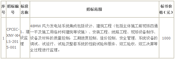 中国电能成套设备有限公司受招标人委托,对萧县协合风力发电有限公司协合萧县灵山风电场项目建设监理招标进行公开招标。