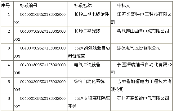 吉林长岭三十号、腰井子风电场二期工程升压站设备招标通过招标评审,结果公示如下: