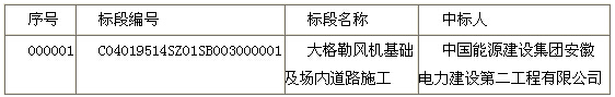 青海大格勒风电场风机基础场内道路施工招标通过招标评审,结果如下: