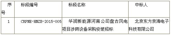 华润新能源河南公司盘古风电项目涉网设备采购安装华润新能源泌阳盘古风电场涉网设备采购安装项目招标结果公示