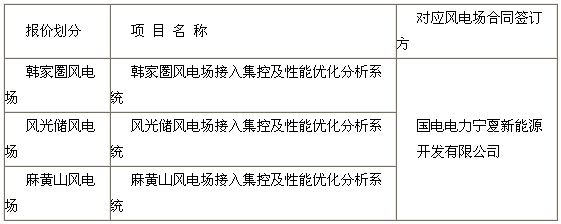 注:本招标文件为国电电力宁夏新能源开发有限公司三个风电集控接入项目的打捆招标,故需投标人根据各项目进行单独报价,以便根据对应项目的价格签订合同。