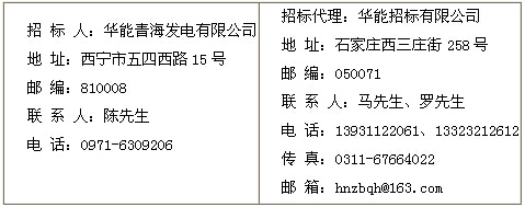 华能招标有限公司(以下简称“招标代理机构”)受华能青海发电有限公司(以下简称“招标人”)委托,就华能青海发电有限公司茫崖风电场、德令哈尕海风电场立测风塔及数据分析、锡铁山风电场移测风塔、测风设备及数据分析进行公开招标,现就该项目招标事宜公告如下: