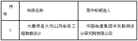 大唐郏县大刘山风电场工程勘察设计招标中标公示