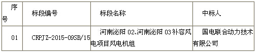 华润电力2015年度第九批次集中招标(河南泌阳二三期增补项目风电机组设备)招标结果公告
