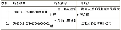 中电投江西新干七琴城上风电场工程、湖南新化古台山风电场项目建设监理通过招标评审,结果如下: