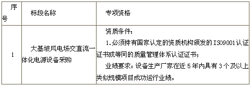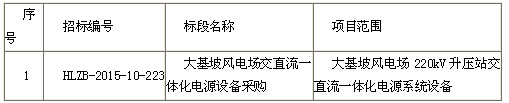 云南鸿立招标代理有限公司受招标人中国电力投资集团公司云南分公司委托,对云南省昆明市大基坡风电场交直流一体化电源设备采购[招标编号:HLZB-2015-10-223]进行公开招标,请符合资格要求的潜在投标人参加投标。
