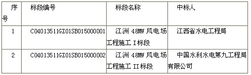 江西江洲48MW风电场工程施工招标通过招标评审,结果公示如下: