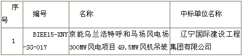 北京京能新能源有限公司京能乌兰浩特呼和马场风电场300MW风电项目49.5MW风机吊装招标工作已结束,现将评标结果公示如下:
