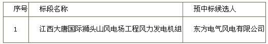 江西大唐国际狮头山风电场工程风力发电机中标公示