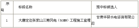 大唐定边张家山三期风电(50MW)工程施工监理中标公示