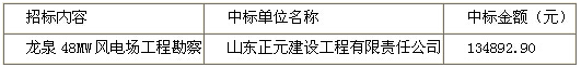 烟台龙泉风力发电有限公司龙泉48MW风电场工程勘察中标公告