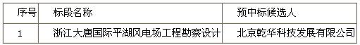 浙江大唐国际平湖风电场工程勘察设计招标中标结果公示