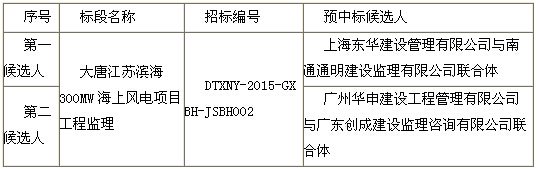 (清洁能源部)大唐江苏滨海300MW海上风电场工程监理中标公示