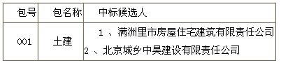 中国神华国际工程有限公司,就国华(呼伦贝尔)风电有限公司风电场土建维修项目进行公开招标,按规定程序进行了评标、定标,现就本次招标的中标候选人公示如下: