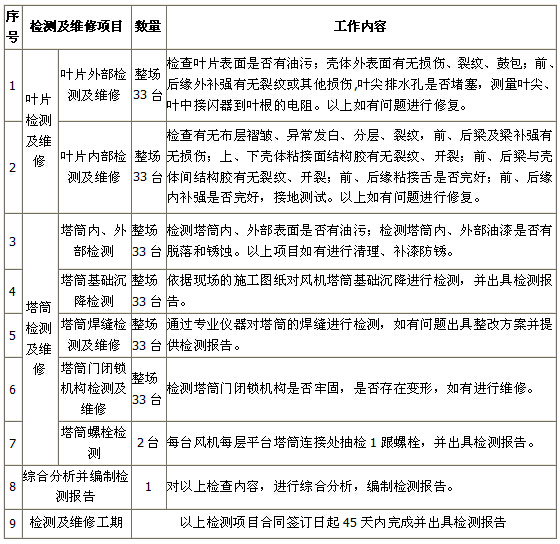 3、2012年1月1日至今,具有风机叶片或塔筒检测和维修业绩不低于4份,时间以合同签订日期为准,提供合同证明。