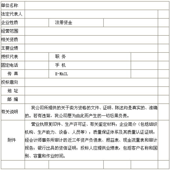 潜在投标人需按下列要求提供报名资料,参加资格审查: