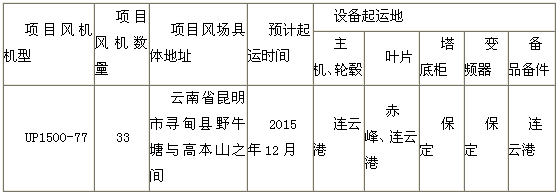 工程名称:大唐云南寻甸金源33×1.5MW风电工程风机运输项目