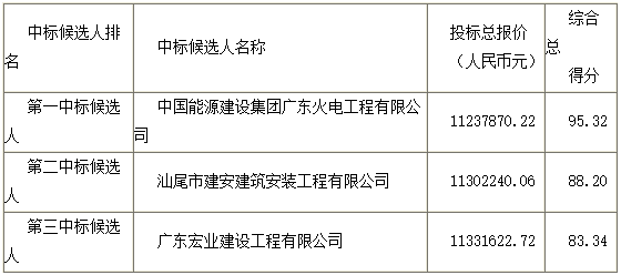 中航新能源湛江雷州调风风电场项目110kV升压变电站土建工程(含接地)施工[招标项目编号:ZTC-G15G-149 ]项目的招标评标工作已经完成,评标委员会向招标人推荐了本次招标的中标候选人名单。 按规定现将中标候选人情况予以公示, (公示时间从2015-12-16 00:00 至 2015-12-18 23:59止),具体如下: