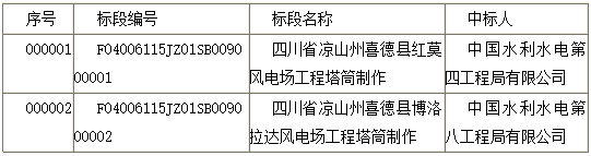 中国电力投资集团公司物资装备分公司2015年第七批风电塔筒集中招标(四川喜德红莫、博洛拉达项目塔筒制作)招标结果公告