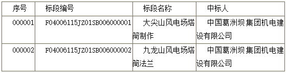 中国电力投资集团公司物资装备分公司2015年第六批风电塔筒集中招标(云南大尖山、九龙山塔筒)通过招标评审,结果如下: