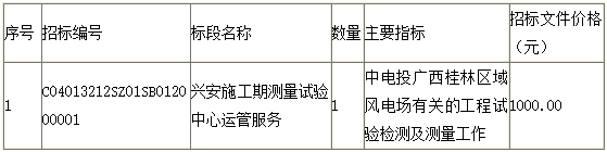 中国电能成套设备有限公司受招标人委托,对广西兴安风电场施工期测量试验中心运行管理服务进行公开招标。