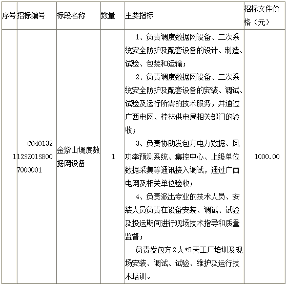 中国电能成套设备有限公司受招标人委托,对广西金紫山风电场电力调度数据网设备采购进行公开招标。