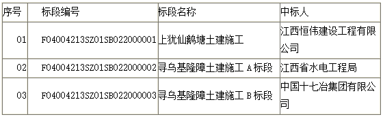 江西上犹仙鹅塘风电土建、寻乌基隆障土建AB标段招标结果公示