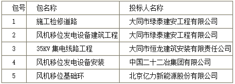 受山西华电广灵风力发电有限公司委托,中招国际招标有限公司对山西华电广灵风力发电有限公司甸顶山风电场#41、#47风机移位改造项目(招标编号:TC1501J11)进行国内公开招标,开、评标工作已结束,现将中标结果公示如下: