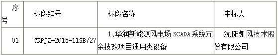 华润电力2015年度第十三批次集中招标(新能源-华润新能源风电场SCADA系统冗余技改项目通用类设备)通过招标评审,结果公示如下: