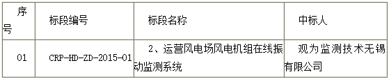 华润新能源华东分公司风电场风机机组在线振动振动监测设备采购采购招标通过招标评审,结果公示如下: