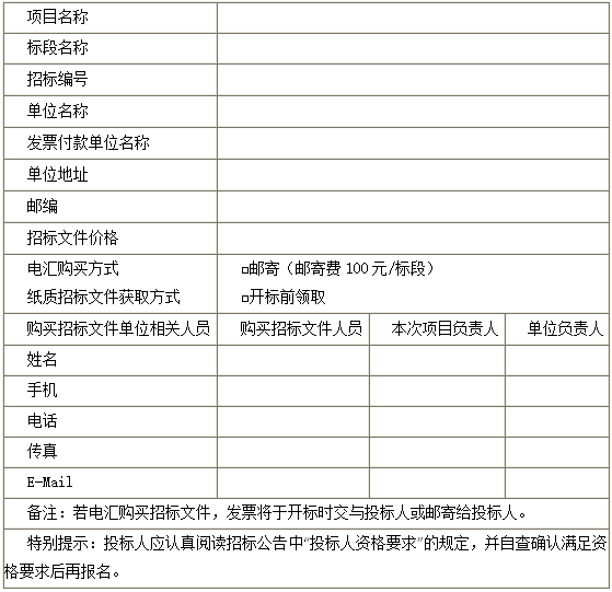 注意:请购买人在汇款时务必注明所购买招标项目的招标编号,否则,因款项用途不明导致购买招标文件无效等后果由购买人自行承担。