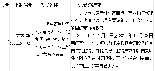 中投咨询有限公司受招标人委托,对国投哈密景峡五A风电场300MW工程和国投哈密烟墩八A风电场200MW工程调度数据网设备采购项目进行公开招标,本次招标采用公开招标、资格后审的方式。