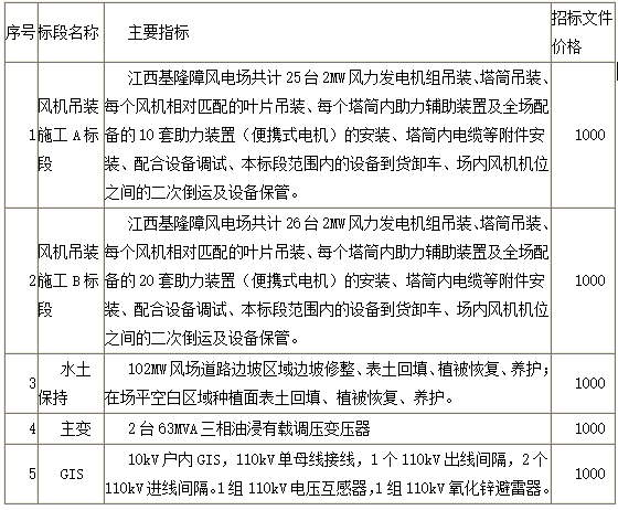 中国电能成套设备有限公司受招标人委托,对中电投江西公司风电项目(基隆嶂风电风机吊装、水土保持、主变和GIS)进行公开招标。
