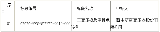 中电投盐城滨海头罾风电场三期项目220kV主变压器及中性点设备招标通过招标评审,结果如下: