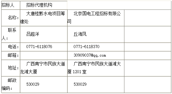 招标人: 大唐桂黔水电项目筹建处