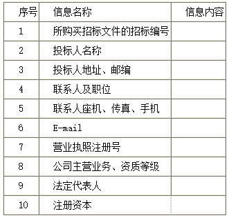 务必提供:营业执照注册号、单位名称、地址、联系人、联系电话(手机和单位座机)、传真、电子邮箱地址、邮编、主营业务、法人、注册资本、资质等级等有效企业信息。