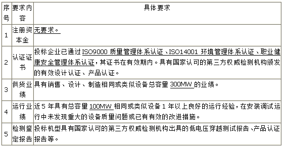 2.1.3 设计制造过与投标产品相同结构、相同型式、同等或以上技术规格的产品。在与规范相同或和较规范更严格的条件下,该产品的投运数量或供货数量及其成功运行时间满足招标人的要求。如同一标段内存在不同类别的设备,则申请人须分别满足标段内各类别设备的资格要求。
