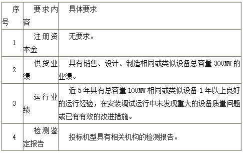 2.1.3 设计制造过与投标产品相同结构、相同型式、同等或以上技术规格的产品。在与规范相同或和较规范更严格的条件下,该产品的投运数量或供货数量及其成功运行时间满足招标人的要求。如同一标段内存在不同类别的设备,则申请人须分别满足标段内各类别设备的资格要求。