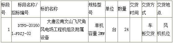 大唐云南文山飞尺角风电场工程风力发电机组及附属设备招标公告