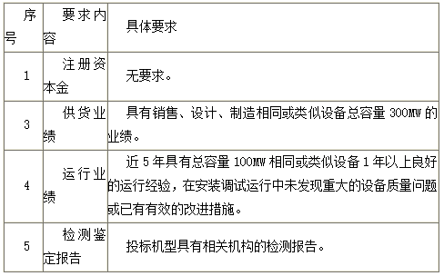2.1.3 设计制造过与投标产品相同结构、相同型式、同等或以上技术规格的产品。在与规范相同或和较规范更严格的条件下,该产品的投运数量或供货数量及其成功运行时间满足招标人的要求。如同一标段内存在不同类别的设备,则申请人须分别满足标段内各类别设备的资格要求。