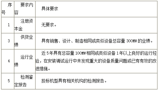 2.1.3 设计制造过与投标产品相同结构、相同型式、同等或以上技术规格的产品。在与规范相同或和较规范更严格的条件下,该产品的投运数量或供货数量及其成功运行时间满足招标人的要求。如同一标段内存在不同类别的设备,则申请人须分别满足标段内各类别设备的资格要求。