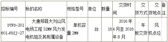 1.2 标的名称:风力发电机组及其附属设备