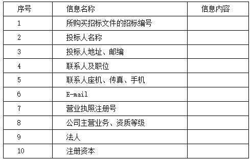 请按招标代理机构地址汇款,汇款单上应注明汇款用途、所购招标文件编号,然后将汇款单复印件、下述表格信息以及授权委托书和被授权人身份证以电子邮件的方式发送至我公司(邮箱:guoxinbabu02@163.com)。招标代理公司收到所有扫描件后将电子版招标文件发到投标单位提供的电子邮箱中。