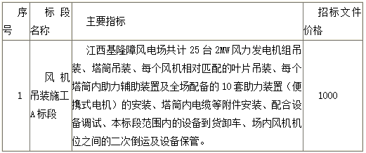 中国电能成套设备有限公司受招标人委托,对中电投江西公司风电项目(基隆嶂风电风机吊装A标段)进行公开招标。