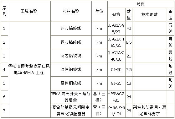 华电淄博沂源徐家庄风电场48MW工程35KV集电线路导线项目进行国内招标采购信息发布。