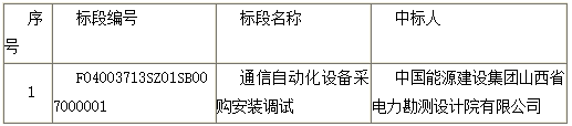 中国电力投资集团公司华北分公司山西中盛达吕梁岚县王狮风电场一期48MW工程通信自动化设备采购安装调试招标(2015年第2批招标)通过招标评审,结果公示如下: