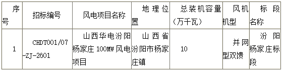 我单位已获悉贵公司关于对中国华电集团公司山西华电汾阳杨家庄100MW风电项目风电机组的招标公告。