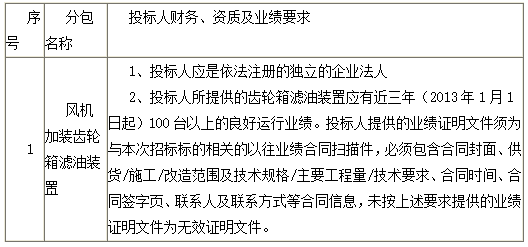 1.4 招标范围为国电电力内蒙古新能源开发有限公司哈达图风电场风机加装齿轮箱滤油装置的改造项目。本次招标包括该项目范围内所有改造前设计、设备制造、设备加工及材料供货、运输及检查、安装、服务等投标方面的技术要求。改造后的性能鉴定试验由投标方委托具有相应资质的第三方(招标方认可)负责实施,招标方可同时负责配合监督。具体内容详见招标文件第二卷的有关规定。