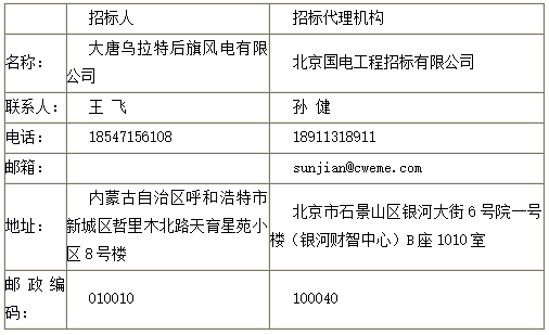 1、招标项目:大唐乌拉特后旗风电有限公司固阳怀朔风电场一期100MW风电项目可行性研究阶段勘察设计